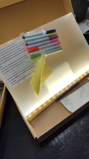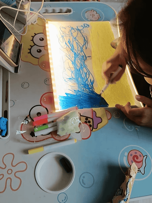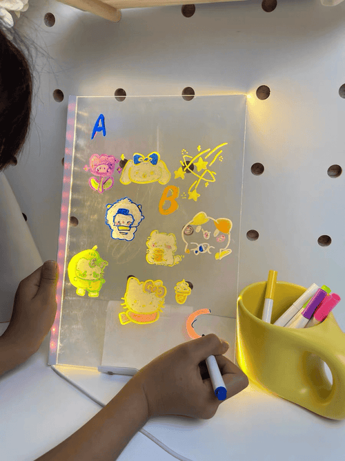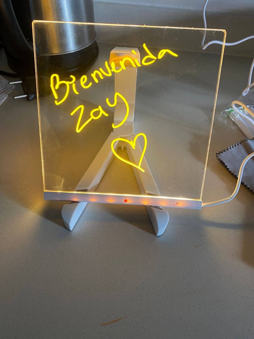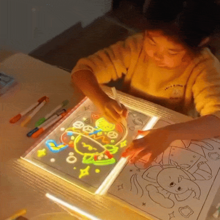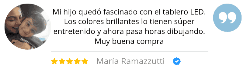 “Me llegó hoy el tablero y NO PUEDO creer lo lindo que se ve 😍 Mi hijo no paró de dibujar desde que lo encendió. Le encantó que todo brilla en neón. Súper recomendado!"